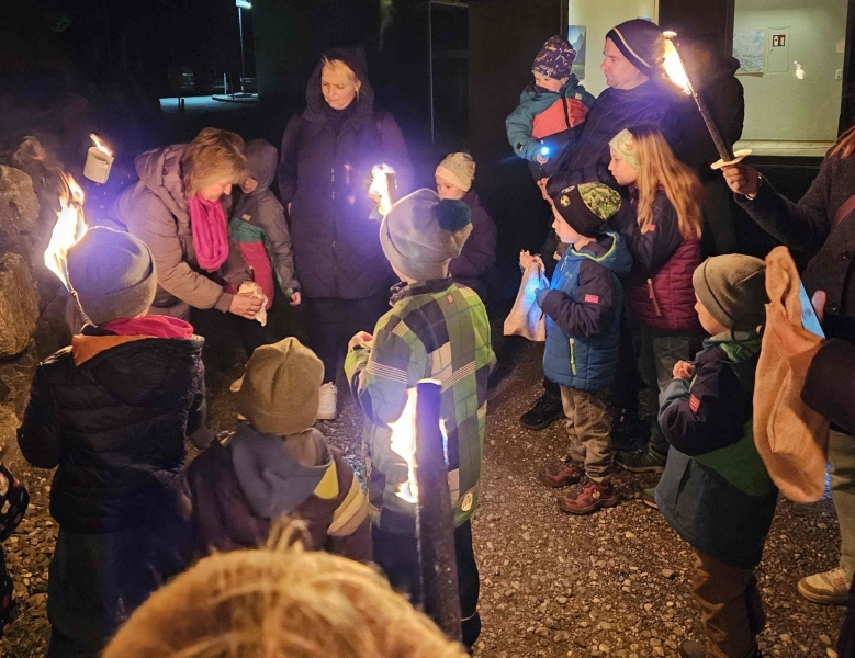 Der Abend gewann besonderen Zauber durch einen Zwergenspaziergang im Dunkeln rund ums Haus, mit Fackeln, Laternen und Taschenlampen. An mehreren Stationen erfuhren Große und Kleine spannende Dinge rund um Salz und Bergbau und durften kleine Schätze in eigens genähte kleine Beutel einsammeln. Der Weg endete am Lagerfeuer mit Salzbrezeln und Salted-Caramel-Schokolade als süß-salzigem Genuss.